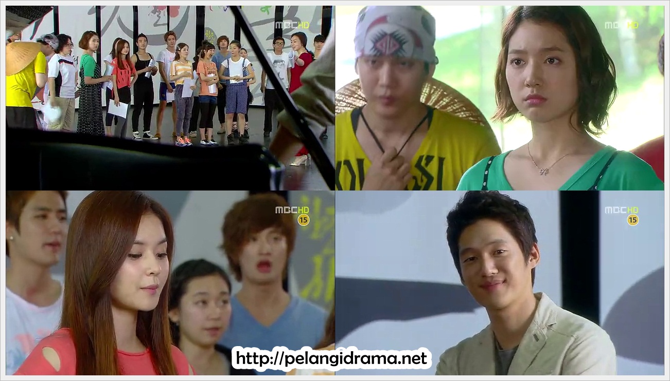 Kyu Won mengangkat tangannya, "Pemeran wanitanya akan dicampakkan?" tanya Kyu Won. "Dia pergi untuk menemukan mimpinya, Cinta… itu adalah hal yang sangat kuat untuk dimiliki" jawab Suk Hyun *kayanya ini storynya Suk Hyun sama Yoon Soo deh*. "Benar, menangis dan tertawa karena cinta tidak cocok untukku" kata Hee Joo. "Tidak ada seorangpun yang berkata kau adalah pemeran utama kan?" sindir Suk Hyun, para sisiwa ada yang tertawa, Kyu Won melihat kearah Hee Joo begitu juga Hee Joo, "Jika bukan aku, lalu siapa?" Tanya Hee Joo. "Kita harus melihat semuanya setelah pelatihan kalian" jawab Suk Hyun, "Dimulai dengan tidak meminum sup Kimchi" kata Suk Hyun, anak-anak tertawa lagi, lalu pemimpim dari 3 wanita itu mengangkat tangannya. "Jadi aneh, Ki Young sunbae tidak disini? Dia tidak berpartisipasi dalam pelatihan?" tanyanya *sunbae : senior*. "Dia memiliki alasan sendiri, jadi dia tidak berpartisipasi untuk hari ini. Dia akan datang nanti" jawab Suk Hyun. "Kau tahu Ki Young Oppa memliki demam panggung?" Tanya Hee Joo. "Tidak ada demam panggung yang tidak bisa disembuhkan, dia akan datang pasti" jawab Suk Hyun bijak, "Tidak perlu mengkhawatirkan ini, lakukan saja pelatihannya dengan baik, oke?" kata Suk Hyun, lalu ia meminta Dosen Hong untuk membimbing mereka.