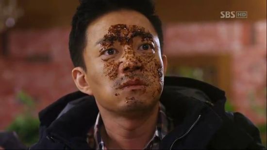 "Bajingan ! Tidak punya perasaan !"ucap Yeo Chi lalu bergegas pergi. Wajah Yoo Bang belepotan kecap.