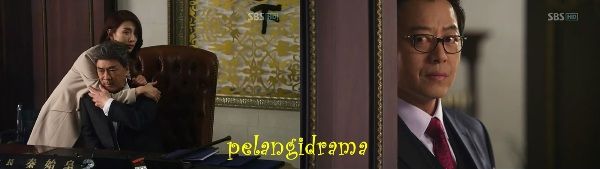 "Didepan para ikan hiu yang haus darah...mau memancing mereka dengan kondisiku? Sudah terlambat untuk menghindari kecurigaan mereka. Jadi Direktur Mo, jangan jauh-jauh dariku. Aku akan menyelesaikan ini, tidak peduli siapa yang akan menjadi penggantiku. Yeo Chi atau bukan" pinta Presdir Jin yang langsung Mo Ga Bi mendekapnya ketika melihat Beom Jung melihat mereka di ujung.