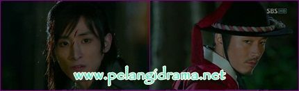 Pyung menghadang jang seong soo. Mengacungkan pedang dileher seong soo.
